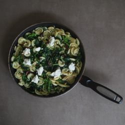 Rapini, a cruciferous green vegetable, is particularly associated with Italian cuisine. Available with different names throughout the country, rapini is better known as ‘Cime di Rapa’ in Puglia – literally meaning “turnip tops”. The distinctively bitter leaves are often paired with creamy pasta dishes, as is the case with this recipe from Panzer’s Deli and Grocer in St John’s Wood.