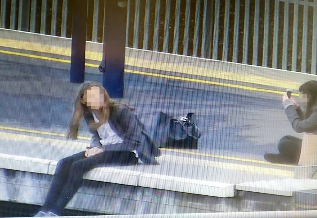 Pictures taken from the railway’s CCTV shows one of the girls leaning over the platform at 5.44pm.