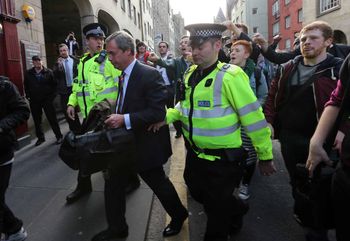 Then Ukip leader Nigel Farage had to be taken away in a police riot van after protesters gathered outside a pub in Edinburgh where he was campaigning in 2013.