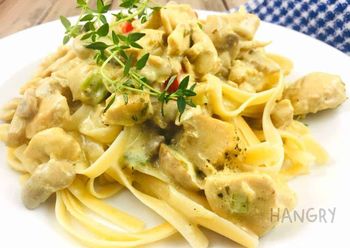 Bacon and Mushroom Arrabbiata with Lentil Penne Pasta