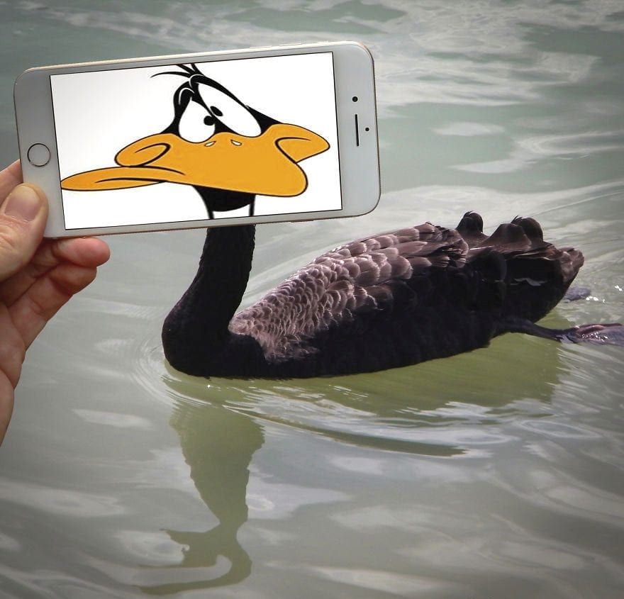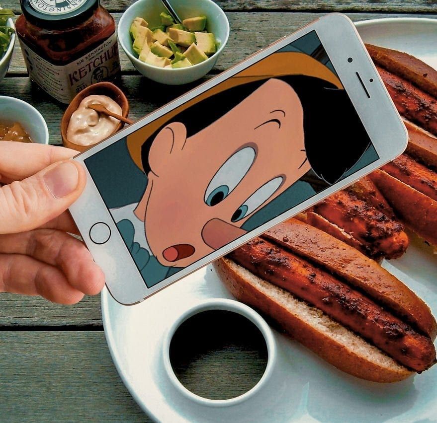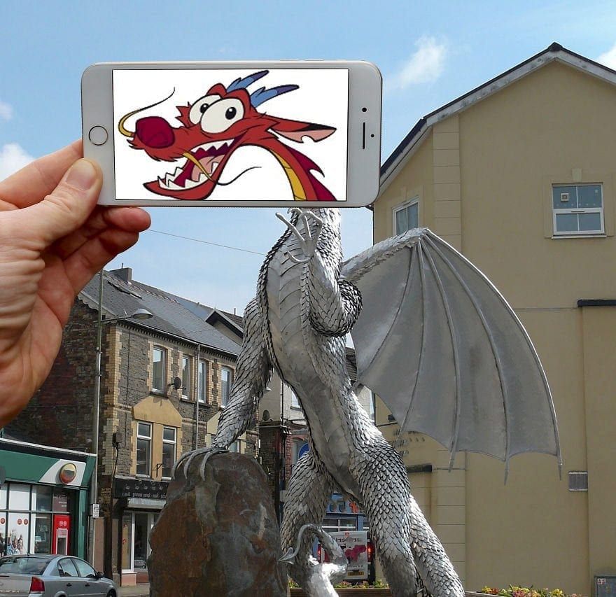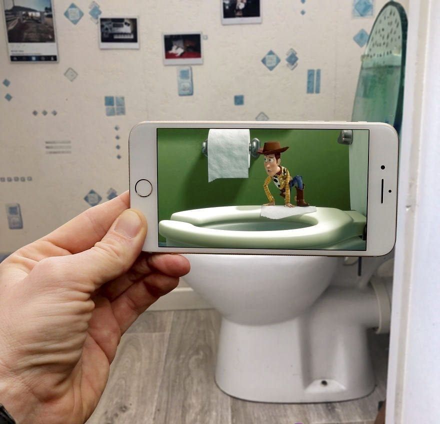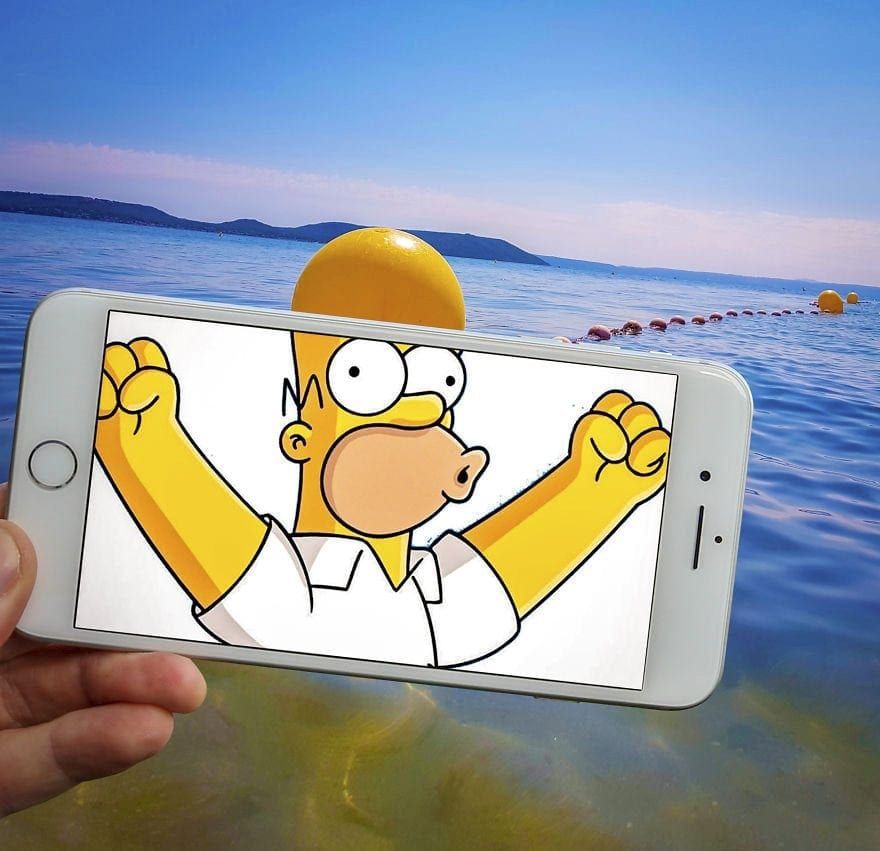 The technique involves holding up his Iphone with an image of a well known character over an every day object or a person and snapping the photo using his Sony A7III camera.