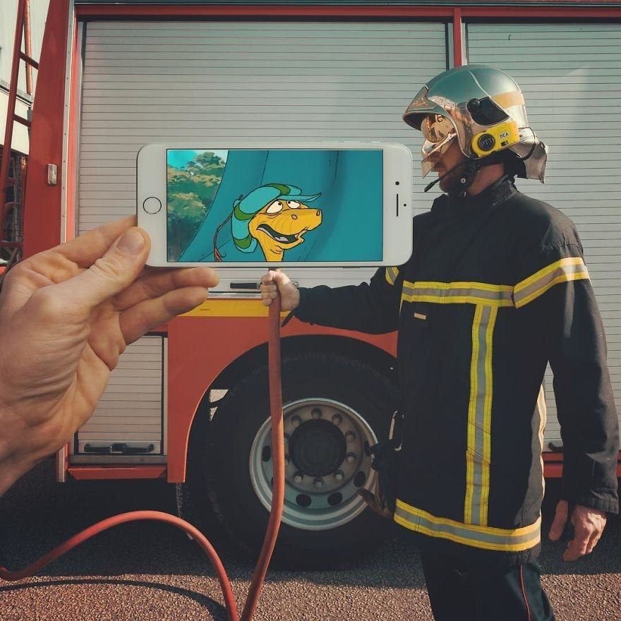 Artist Francois Dourlen has come up with an ingenious and amusing way of combining iconic film and cartoon characters with everyday life.