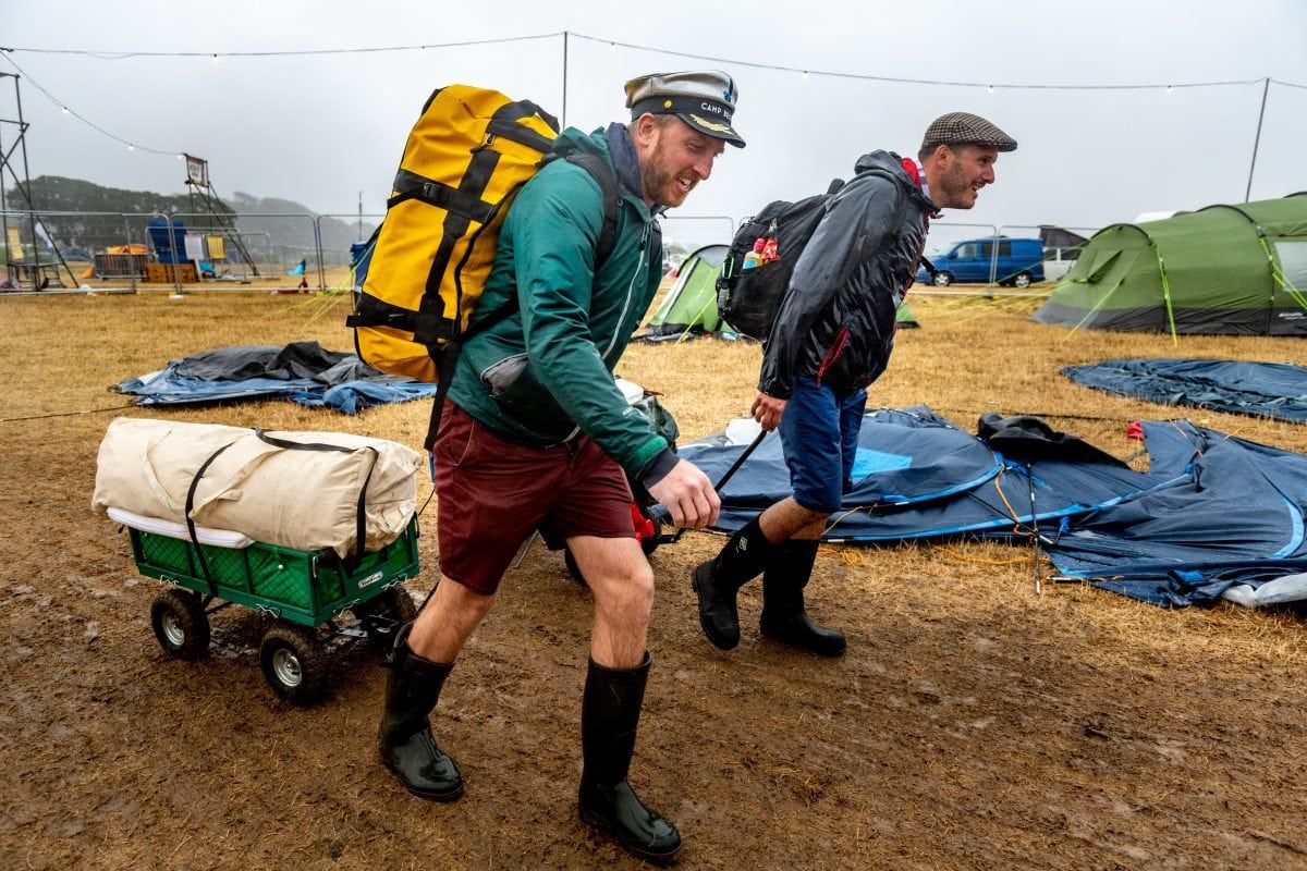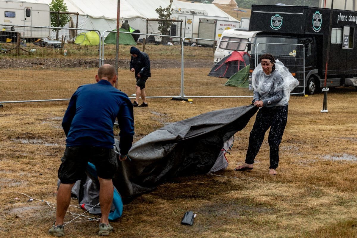 After three days of heatwave sunshine, the festival organisers announced that due to high winds and rain they were advised by their safety team not to reopen the main arenas yesterday.