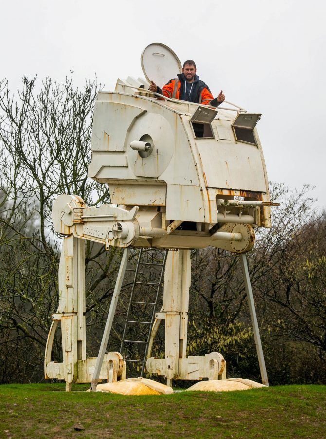 Paul Parker installed the life-size figure of an AT-ST, which featured in Return of the Jedi, in his field alongside the A38 near Ashburton, Devon.