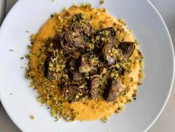 Roasted baby artichokes, Lancashire rarebit & garlic breadcrumbs