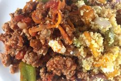 Serve this flavoursome Moroccan minced pork stew in a bowl with mint-infused couscous. Garnish with chopped cilantro and toasted almonds for a nutty crunch.