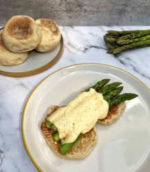 English muffins are fairly simple to make at home, delicious with new season asparagus and hollandaise sauce.