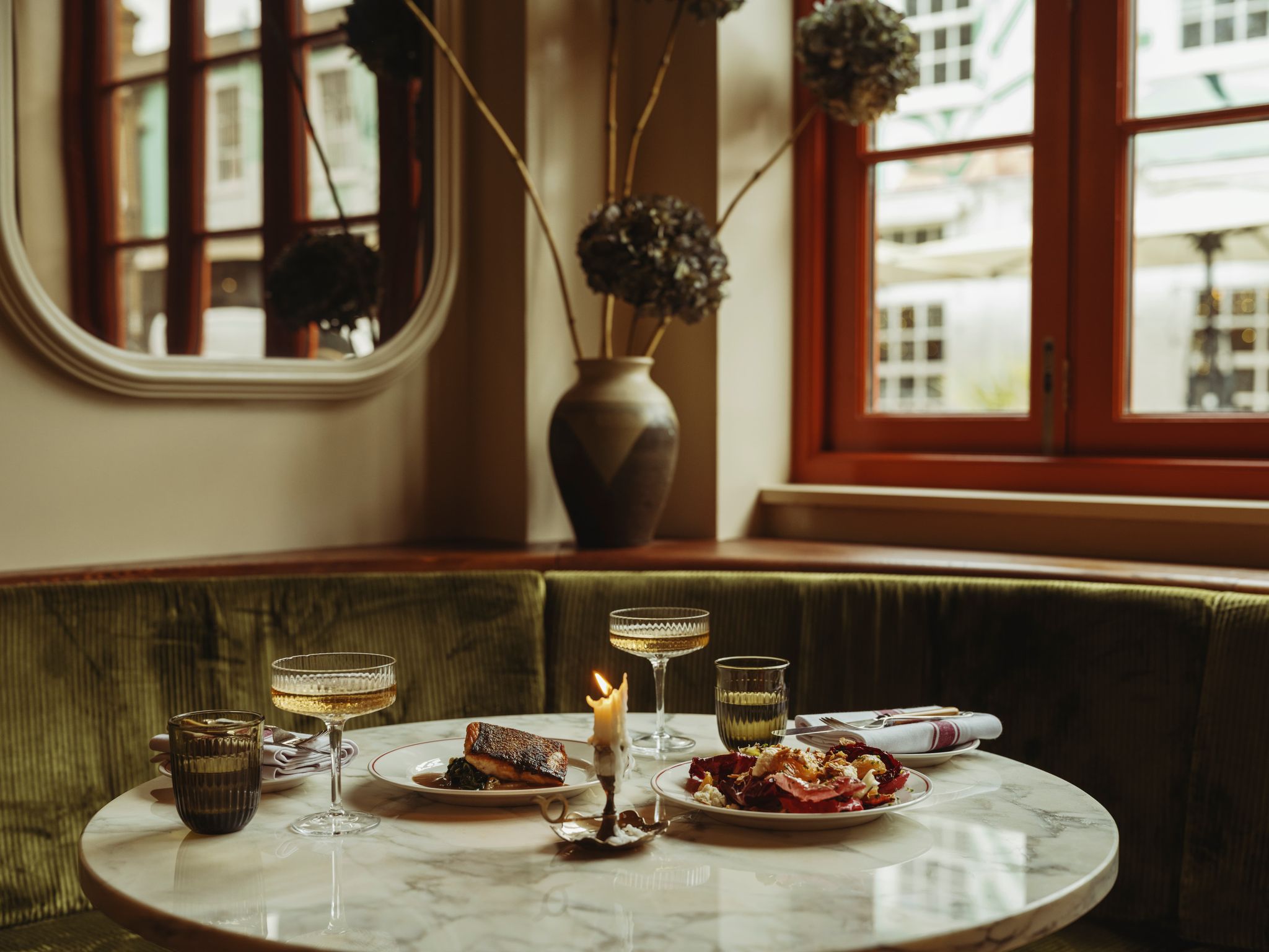 Inside, creative director and stylist Daisy Peath has pulled off a bit of a conjuring trick. The atmosphere is both homely and welcoming, yet properly designed and elevated. Part bistro, part bar, part someone’s living room. A mix of authenticity and style that is so hard to achieve or even describe, but instantly obvious when you’re in it.