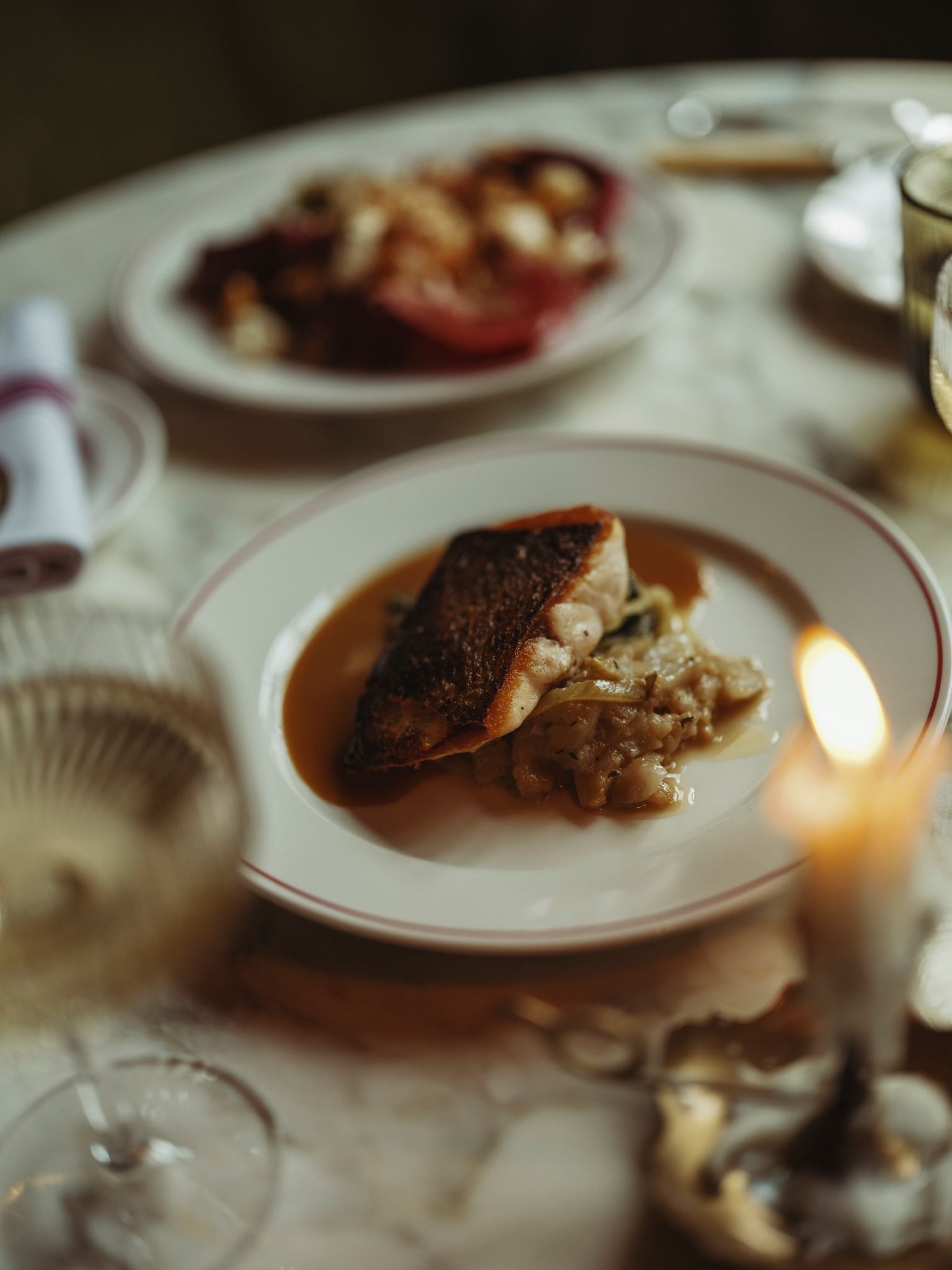 Next up: cod cheeks with a curried butter drizzle. Wonderfully meaty fish with delightfully charred edges lounge on a bed of surprisingly complex cauliflower purée, drizzled with the perfect amount of curried butter. The butter is a sensation, the curry leaves just enough to be a lively guest, without monopolising the conversation. It tastes like butter, but feels fresh and effervescent. I know there’s lemon running through it so that will have something to do with it. But if you or I put lemon in butter, we’d get — well, lemon in butter, not this. There’s some dark magic happening here. It’s a Sri Lankan beach sunset on a plate.