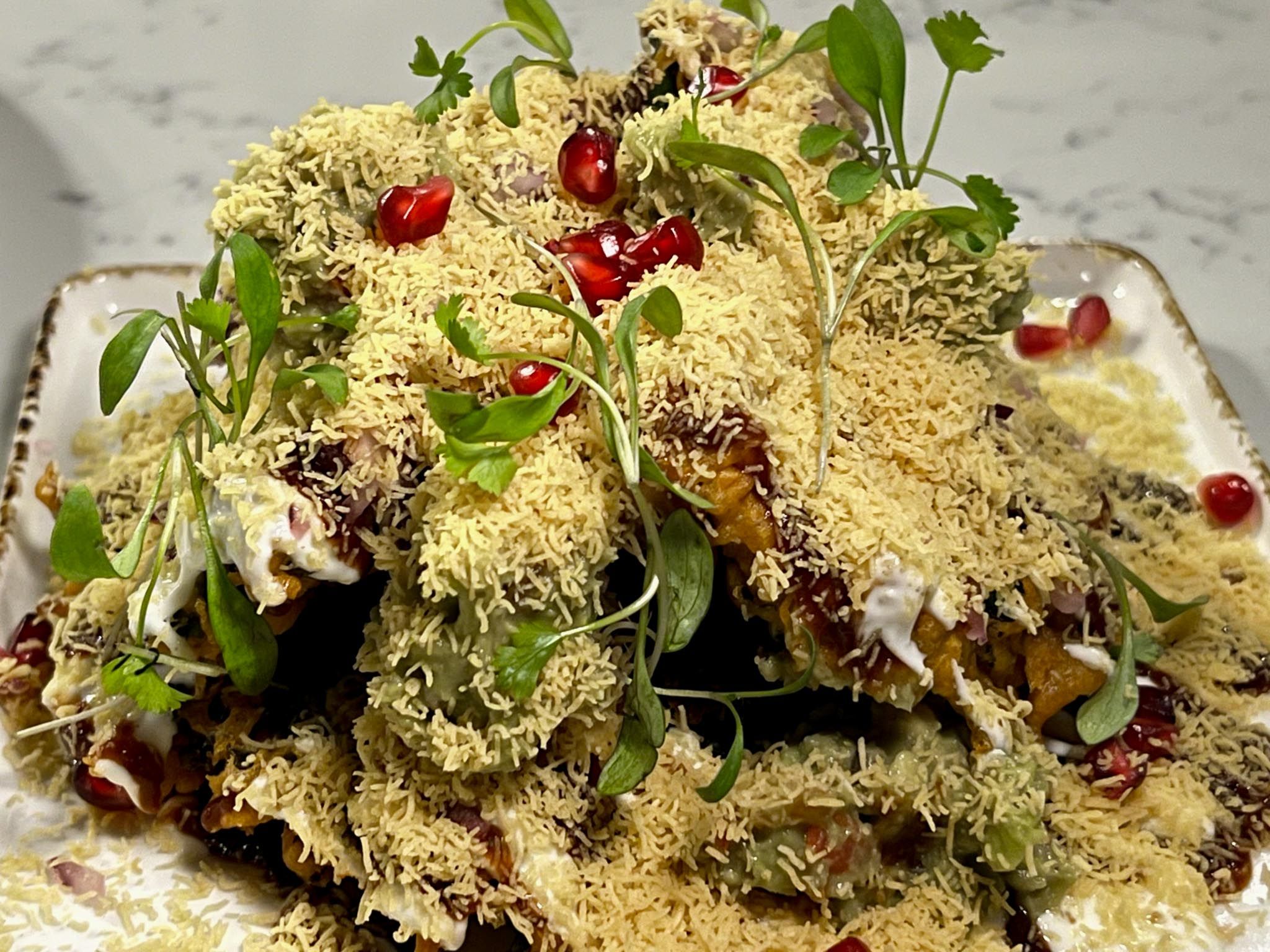 We asked for the six dishes we ordered to arrive as and when ready, first to the table being avocado and kale chaat – a cold dish, imagine crispy kale tempura; sweet, sour, mildly spicy.