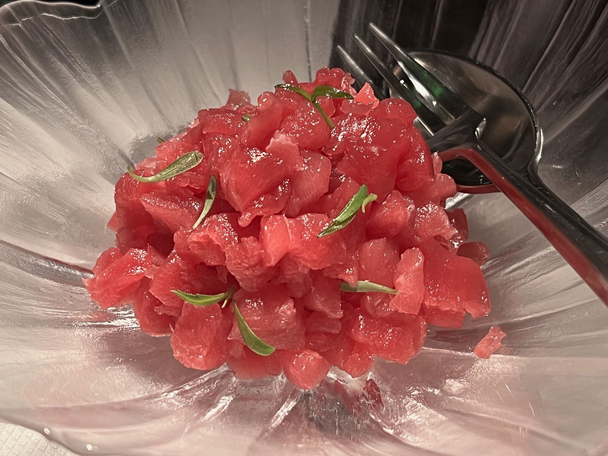 By way of entrée I ordered the bluefin tuna tartare served with Grandjean olive oil. So vibrant, pink and perfect, it arrived looking just like chopped watermelon. Don’t expect fireworks, it’s extremely subtle with umami of olive oil.