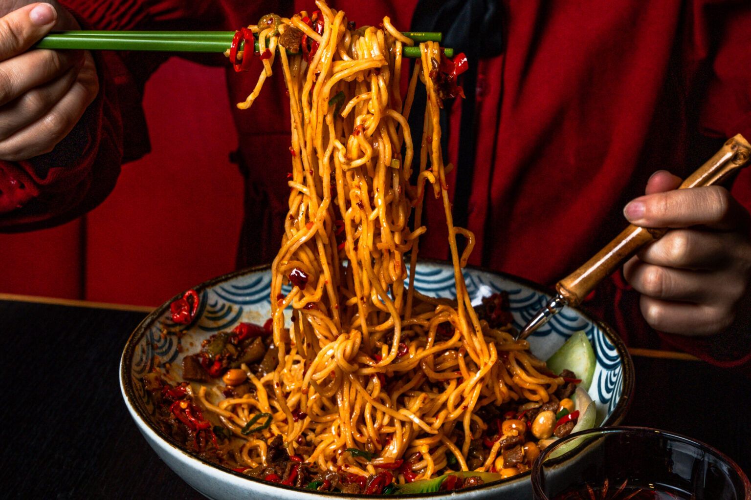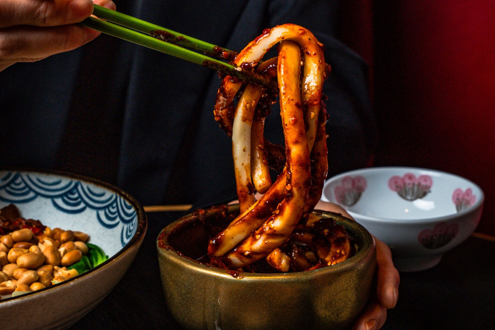 Now when you hit the main courses is where it gets serious my friends. Their ‘chilli-ometer’ ranges from one to five chillies per dish. The star of their Noodles with Soup dishes – Niu-Rou Miian, with wheat noodles, premium braised beef, Chinese herbs, cabbage and coriander, comes in at a sharp jab three-chilli rating while their signature dry noodle Xian Jiao Niu-Rou, with wheat noodles, red pepper, beef, peanuts, spring onions and pickled greens, is the full uppercut five-chilli rating. It was like I used to feel ordering a phall curry as a student. But in infinitely (and I mean infinitely) cooler surroundings.