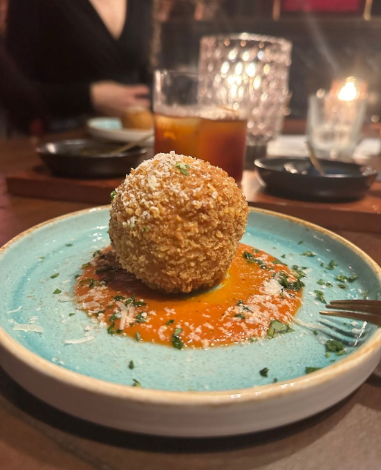 Track 2: Gin Negroni and Saffron risotto Arancini filled with rich Beef Ragu on a warm Arabbiata vinaigrette
