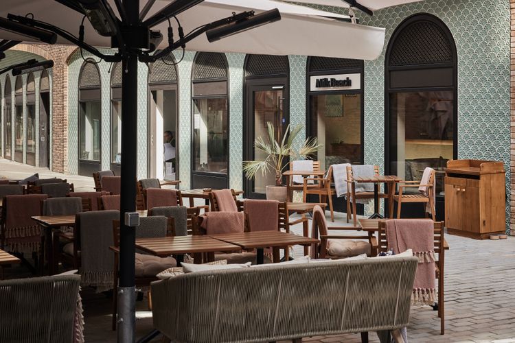 Aquamarine seashell designs cover acres of wall. Creamy paint and dark wood timbers conjure elegant bistros in sunnier corners of the world; those smart beach bars in Cannes, Miami, Athens, Dubai, or… Sydney.