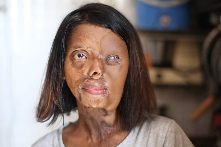 The acid attack damaged her left hand beyond repair, and left her unable to close her eyelids properly.