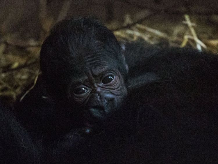The three-day-old endangered western lowland gorilla was snapped clinging on to its mother, a 22-year-old female.
