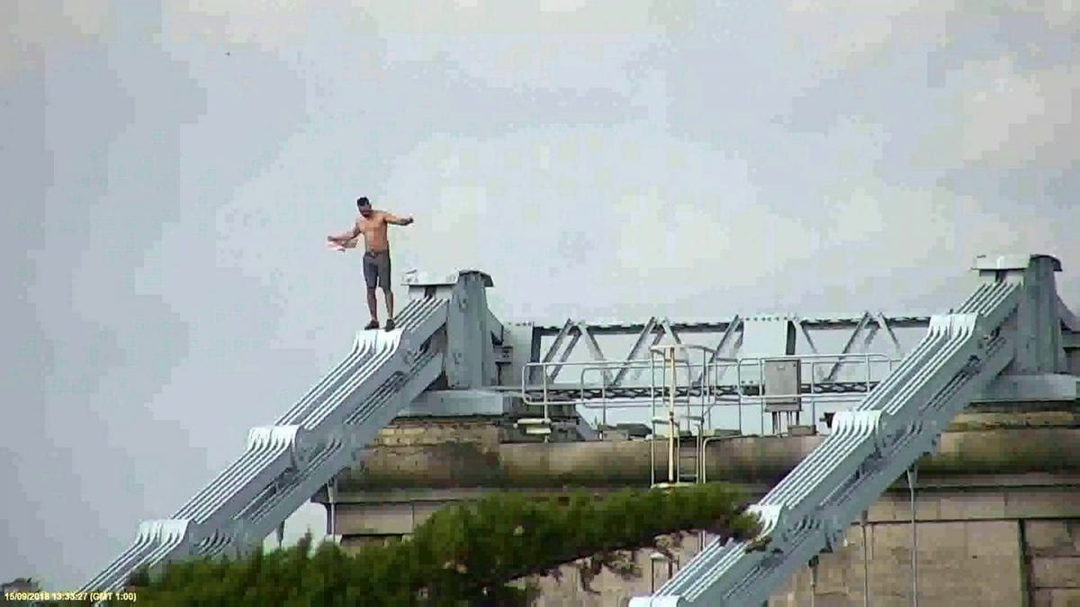 When police were called, Jones ran to the 200-year-old bridge and climbed over the railings, the court heard.