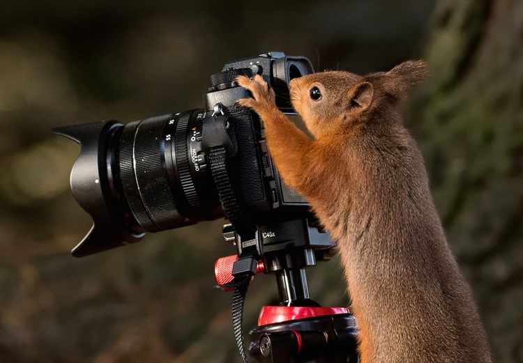 This is the comical moment a red squirrel gets behind the camera to show a professional wildlife photographer how it’s done.