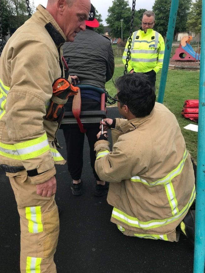 In June 2015, a crew had to cut a teenager after she got stuck in a child’s swing in Ryders Hayes Park, Aldridge, West Midlands.
