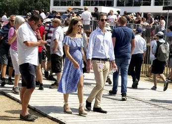 The mum-to-be, 34, was spotted walking hand-in-hand with husband James Matthews, 42, in Chippenham, Wiltshire.