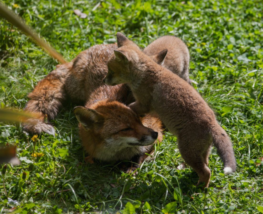 “A few weeks later the cubs started to emerge and were very skittish to begin with -like if a pigeon landed in a tree or something they would leg it.”