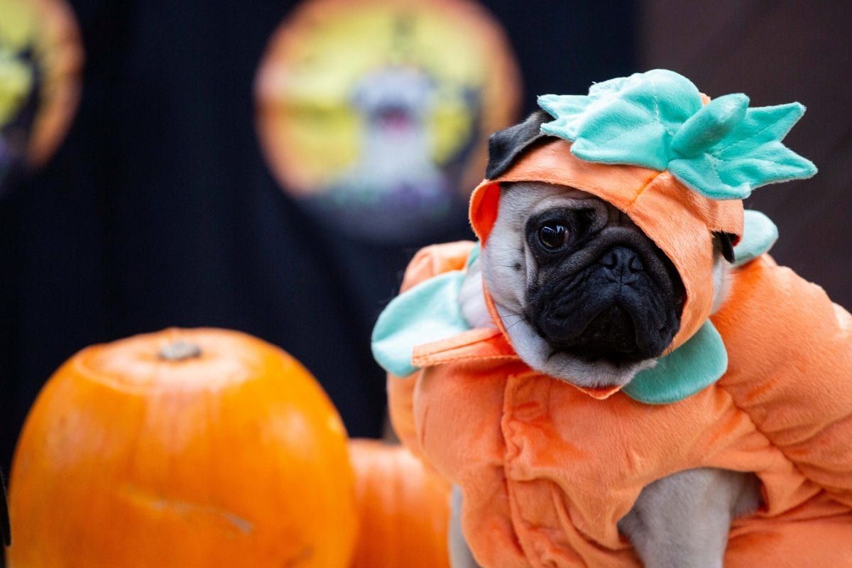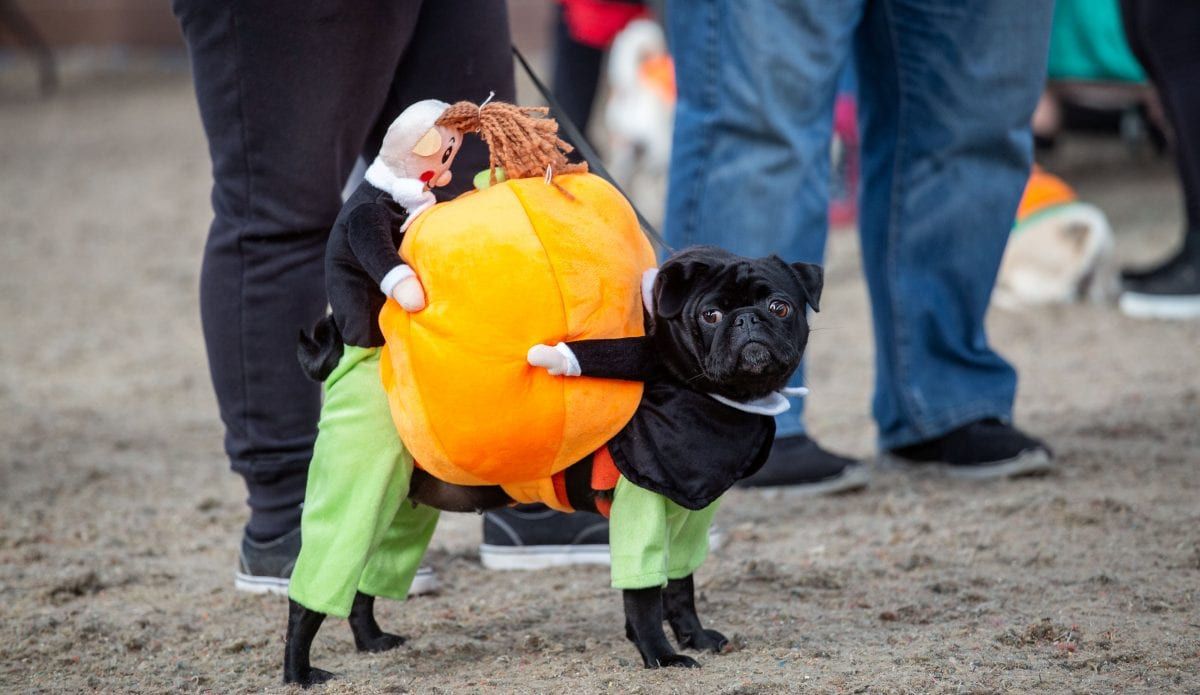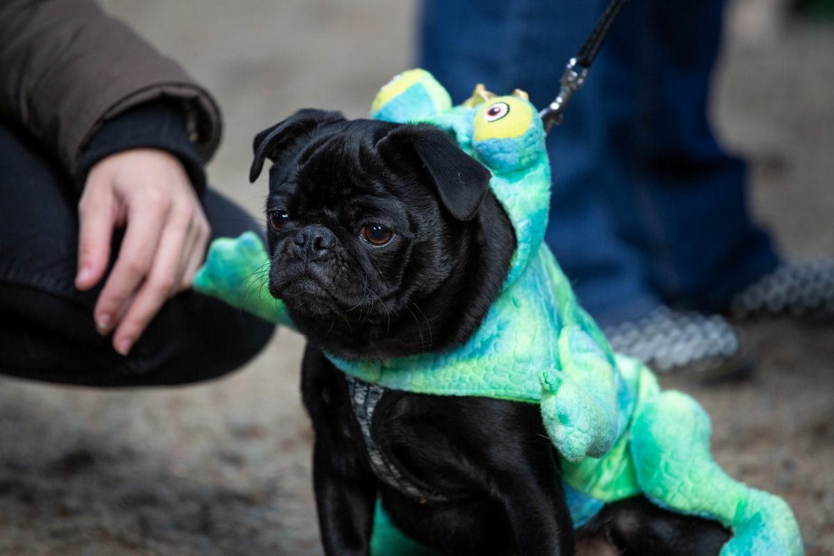 Pugs in costumes gather for the Halloween themed Pugfest held at the Avon Riding Centre