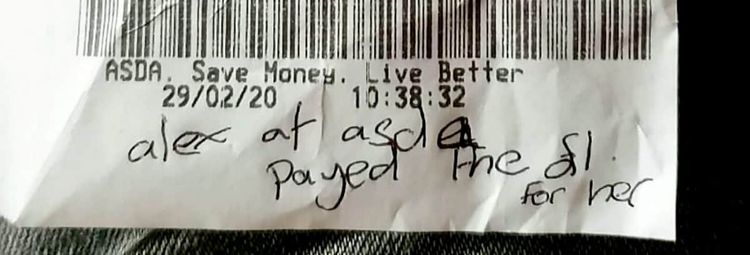 House-husband Chris posted a picture of the receipt on social media as a thank you to Alex and it has since gone viral with thousands of shares across the world.