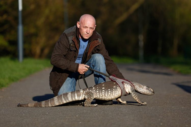 A dad-of-one has been ordered to keep his huge pet lizard on a LEAD while walking it in a park – after it scared other dogs.