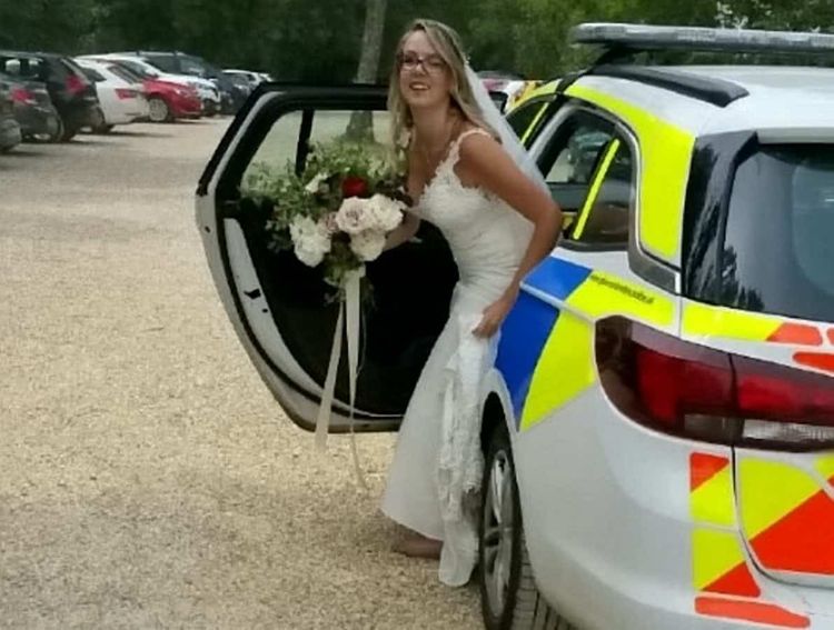 The car hired to take the bride, named Chloe, to her nuptials had broken down nearby so officers came to the rescue.