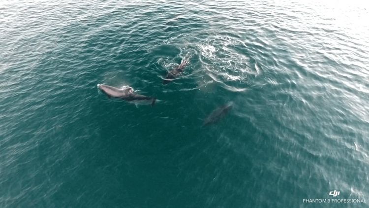 “I flew my drone over and caught up with them, there was about 10 or 15 dolphins.