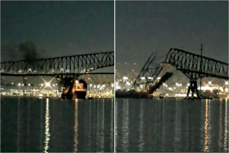A portion of the Francis Scott Key Bridge in Baltimore collapsed after a large boat collided with it early on Tuesday morning, causing multiple vehicles to fall into the water.
