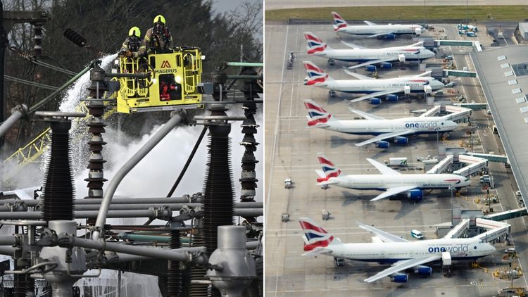 The airport told passengers not to travel “under any circumstances.” The fire at the North Hyde substation in West London has also left almost 5,000 homes without power, National Grid UK has said.