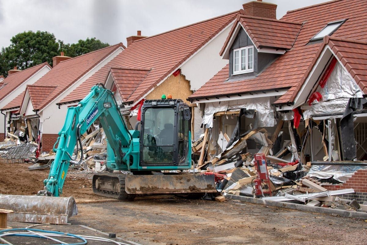 A builder caused £4m worth of damage to five new-build houses with a green company digger was left “disgruntled” over being sacked, a court heard.