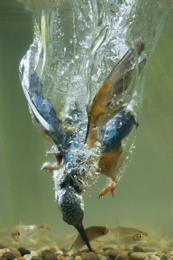 These stunning images show the split second a kingfisher dives underwater to catch a fish – after catching sight of it from 30ft in the air.
