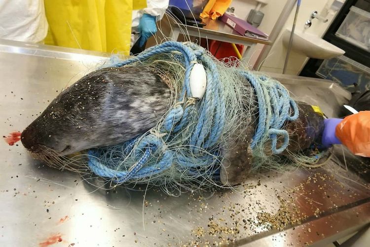 “Seals are very curious animals and they will investigate nets floating in the water or attached to the seabed and can get entangled in them.”