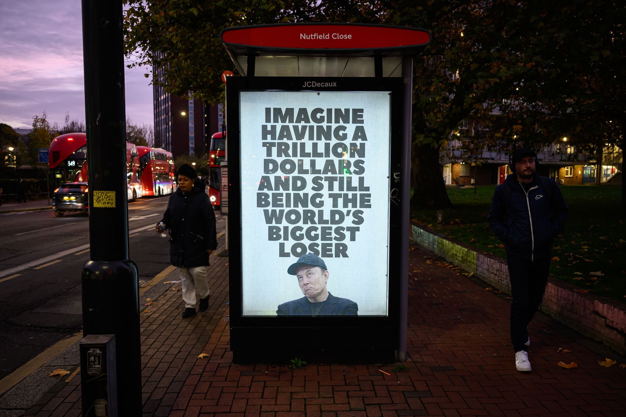 Everyone Hates Elon also put up one of their now-iconic bus stop posters to commemorate Musk’s pay packer.
