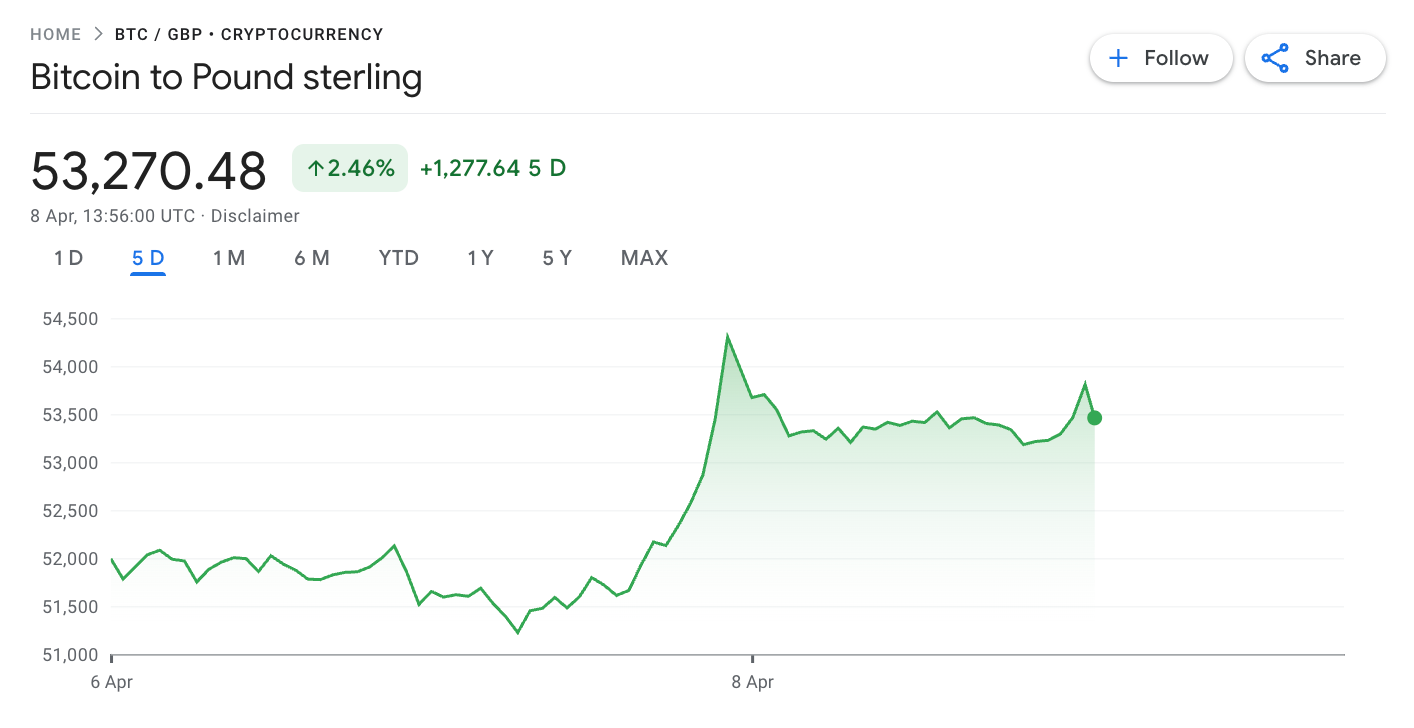 Since the news of the ceasefire was announced, the price of Bitcoin has surged by almost £1,300.