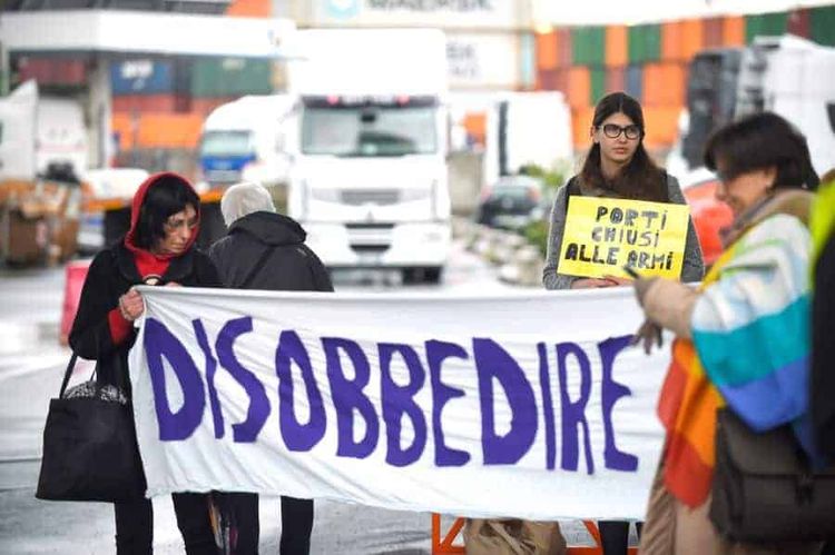 Italian unions refused on Monday to load electricity generators onto a Saudi Arabian ship with weapons on board in a protest against the war in Yemen.