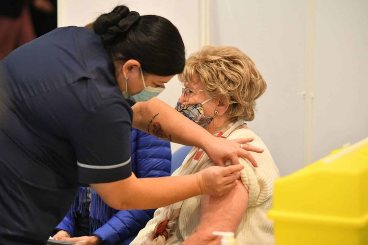 Moira Edwards, 88, became the first person to receive the Oxford/AstraZeneca jab at Epsom racecourse in Surrey at around 8.15am.