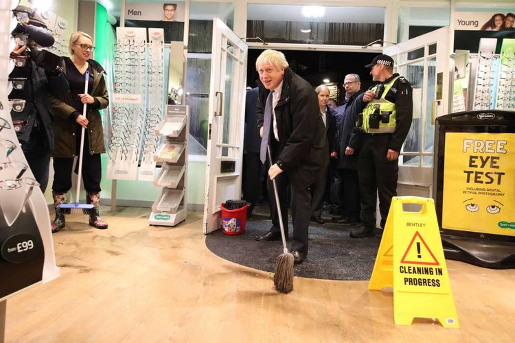 Mr Johnson even got his hands dirty and helped out in the clean-up operation by mopping the flooded floor of a Specsavers in Matlock.