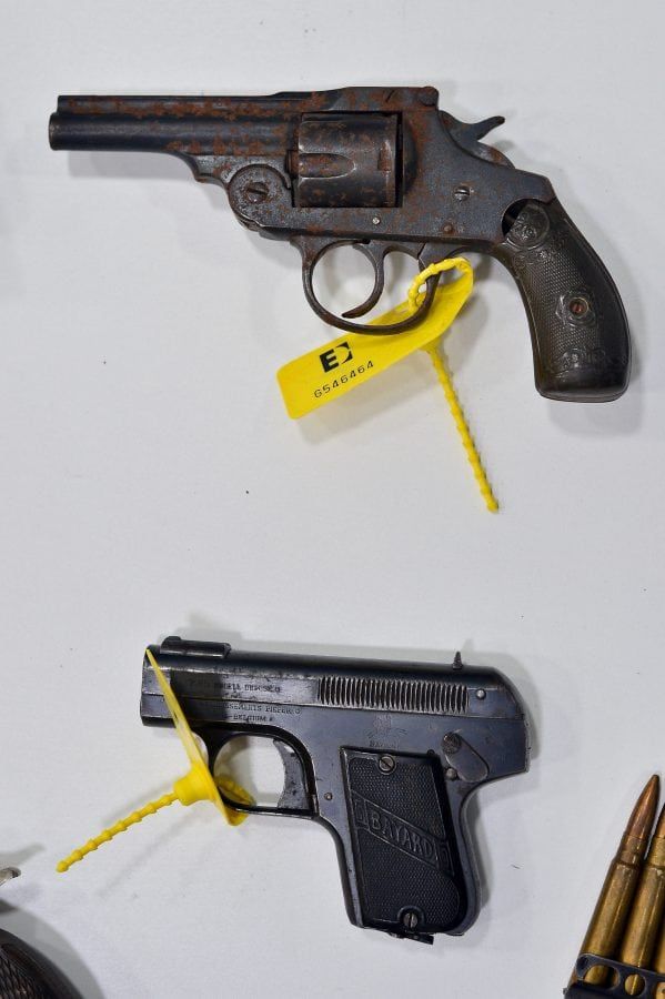 The terrifying haul of over 100 guns include a .44 Magnum revolver, 20 shotguns, a Winchester Repeater rifle as well a Second World War flare gun.
