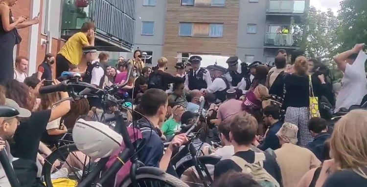 Metropolitan Police officers were called to Evan Cook Close shortly after 1.30pm on Saturday “to a report of protesters obstructing immigration officers” and said officers remained at the scene shortly before 5pm.