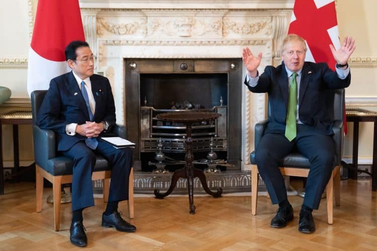 Boris Johnson munched on ‘Fukushima popcorn’ as he met with Fumio Kishida, the Japanese prime minister.