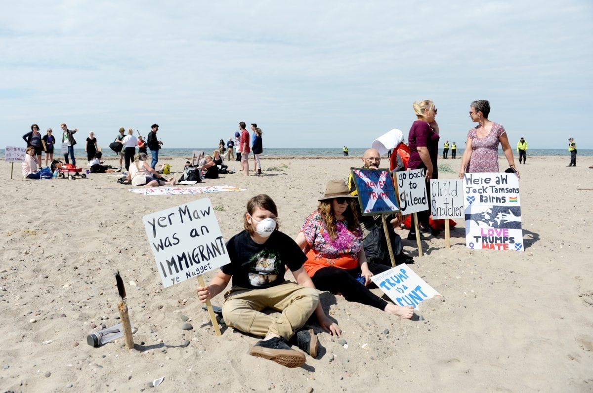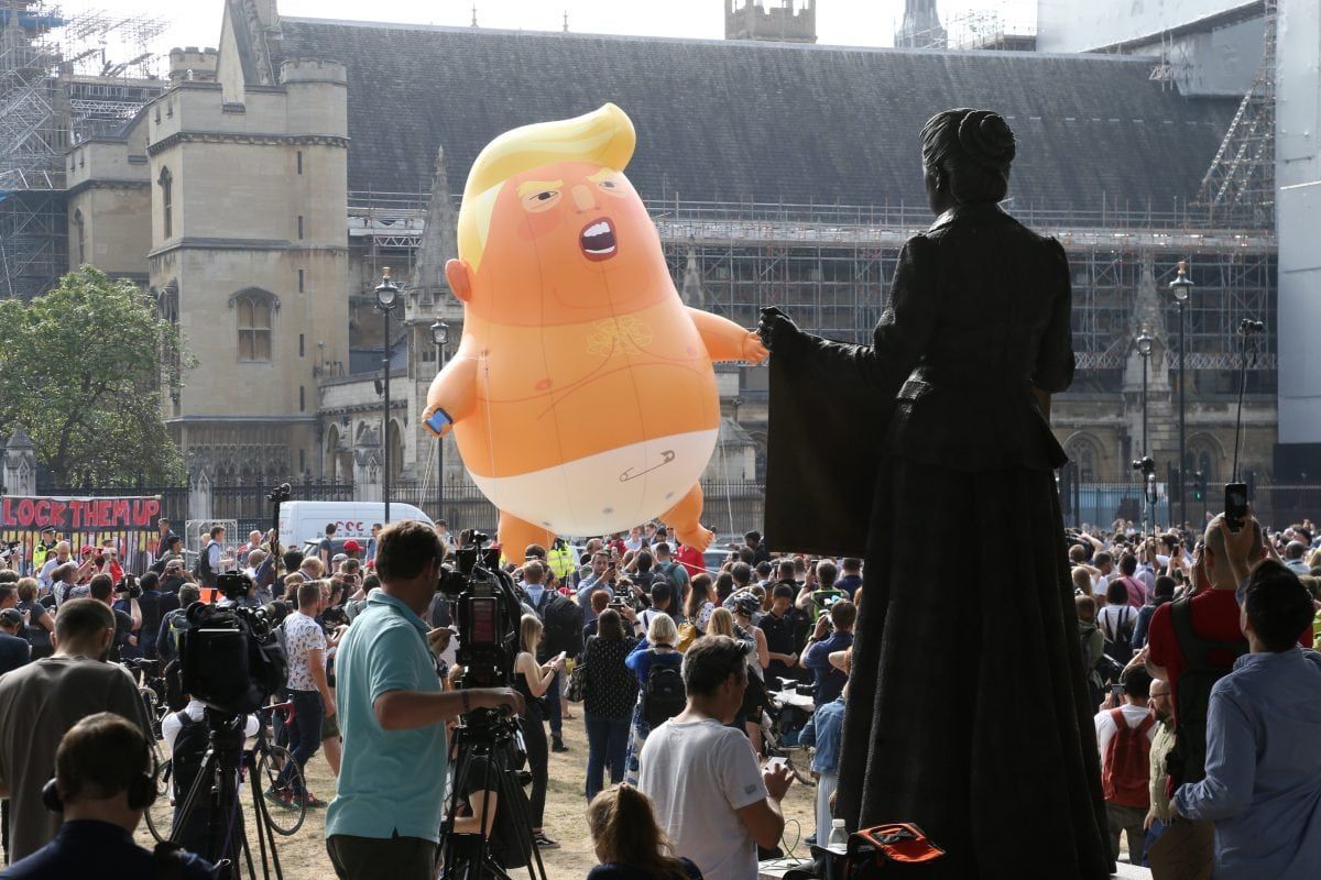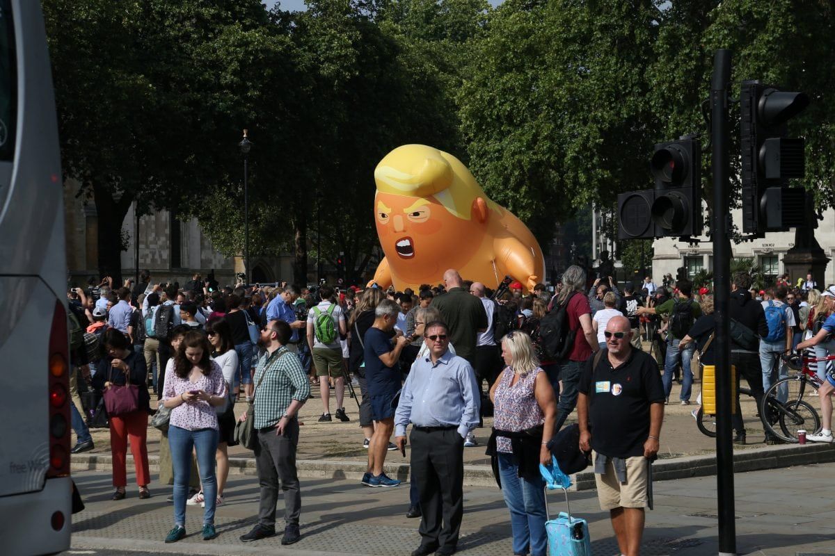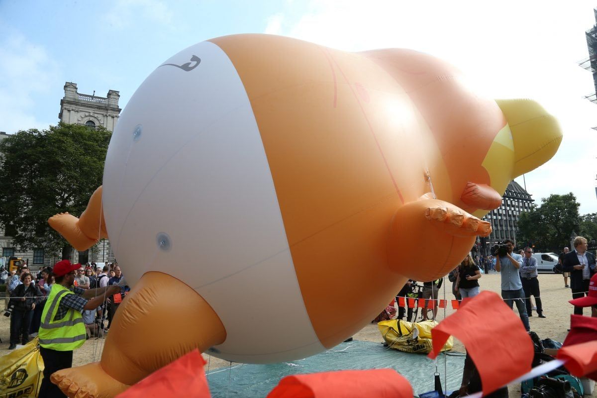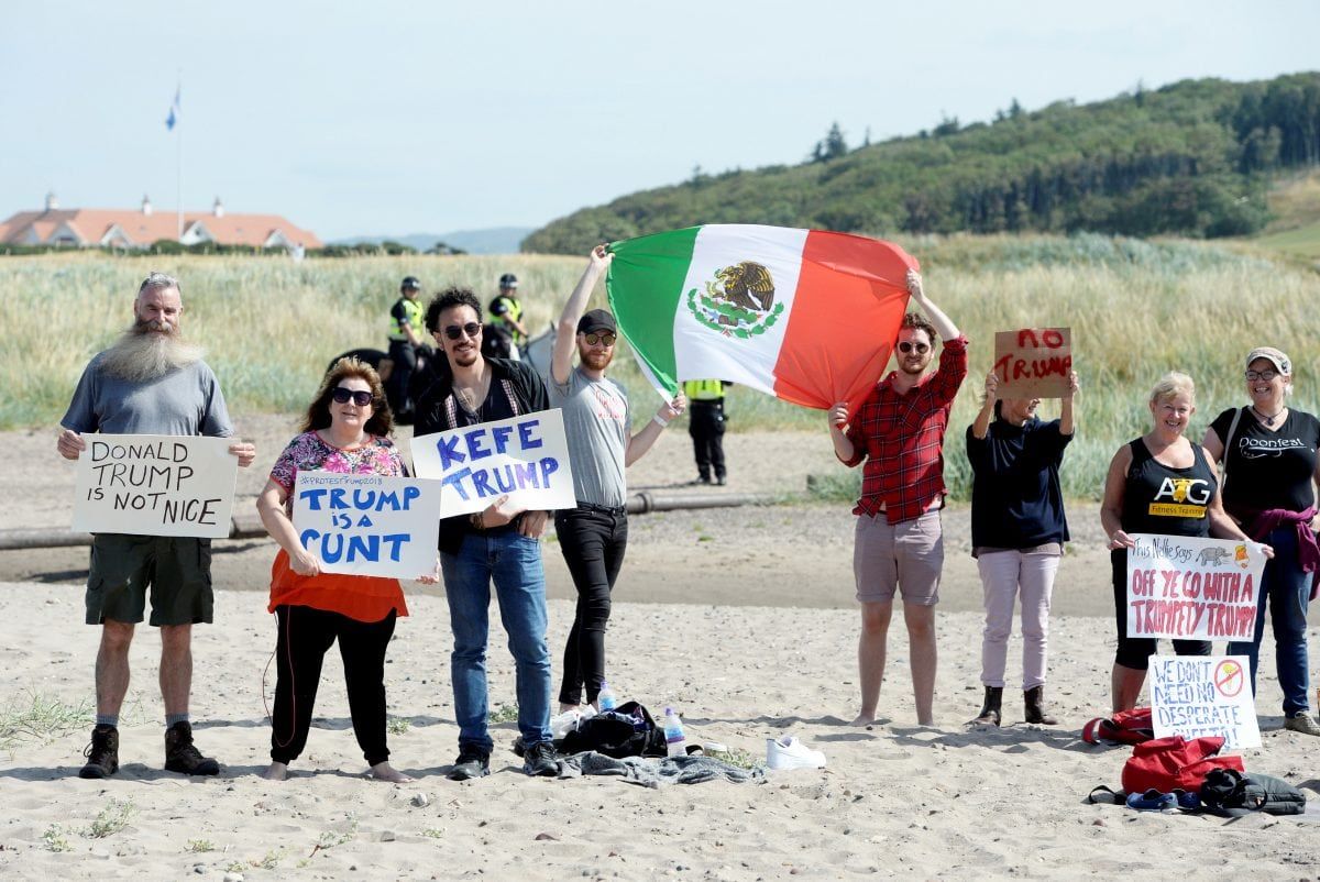 Trump’s visit last year was greeted by hundreds of thousands of protestors in London – as well as a giant inflatable baby Trump blimp – , demonstrations in Edinburgh and interrupting a round of golf at his Turnberry resort.