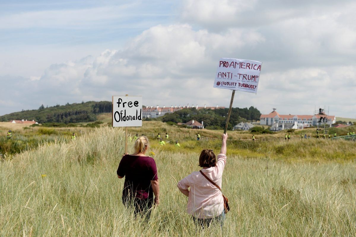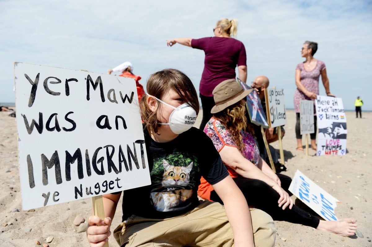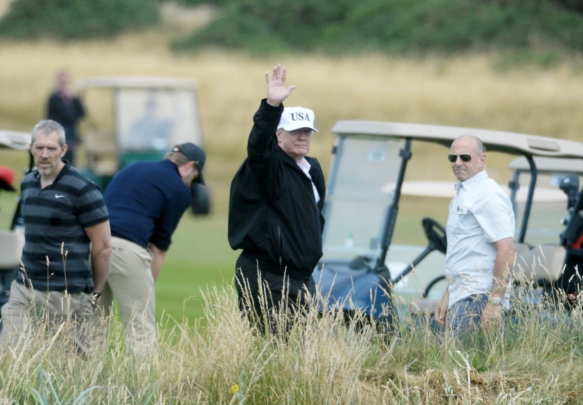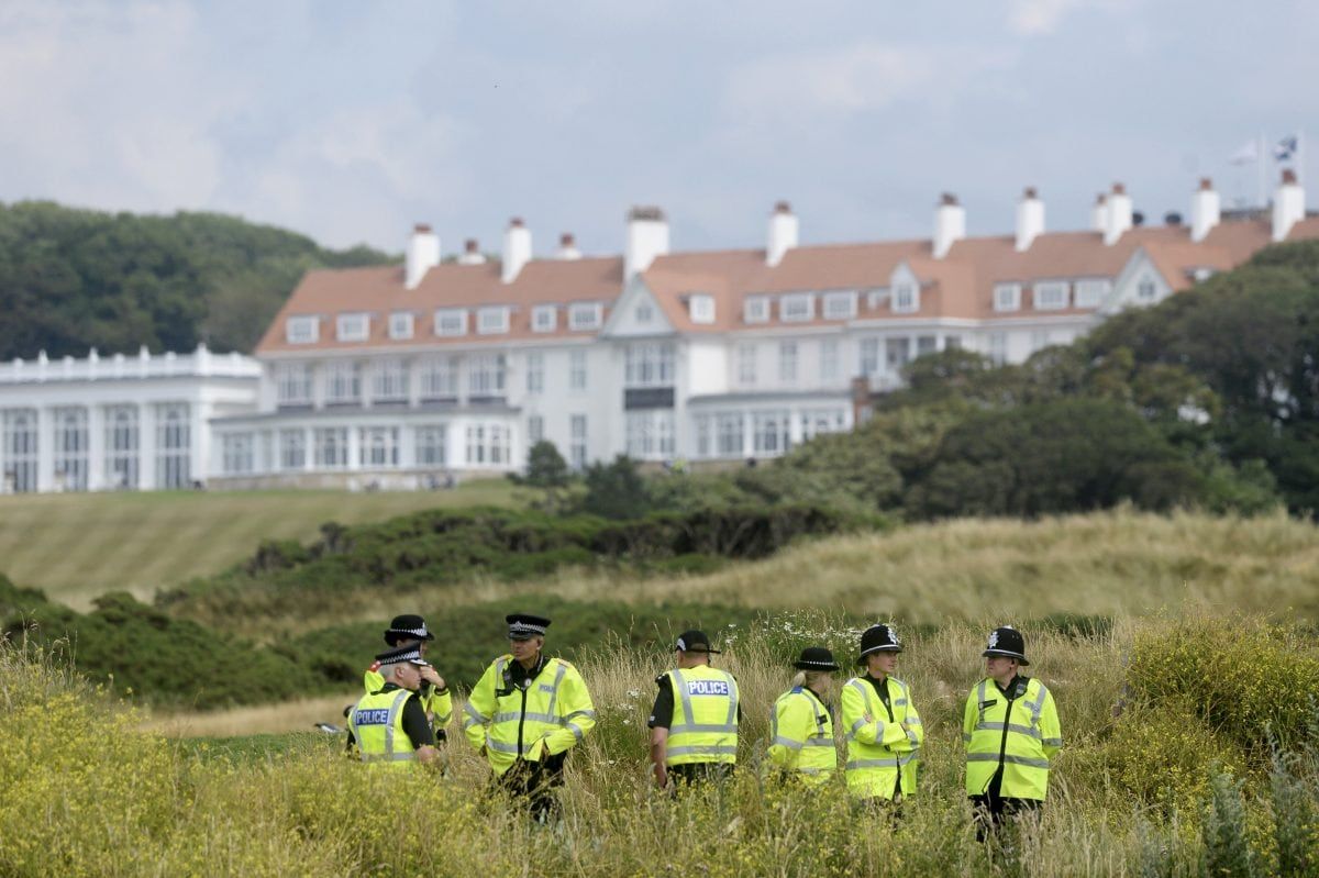 Trump’s visit last year was greeted by hundreds of thousands of protestors in London – as well as a giant inflatable baby Trump blimp – , demonstrations in Edinburgh and interrupting a round of golf at his Turnberry resort.