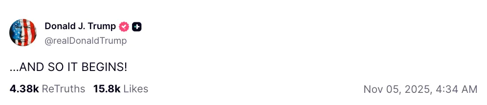 Taking to his social media platform Truth Social, he wrote: “…AND SO IT BEGINS!”