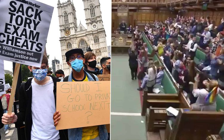 Thousands of young people gathered outside Downing Street on Friday chanting for Education Secretary Gavin Williamson to be sacked after thousands of pupils in England had their results downgraded.