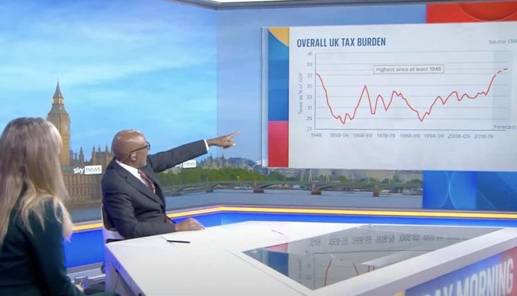 A look of fear and confusion was present on Trott’s face, after Sky News brought up a graph that showed the UK’s tax burden over the last 80 years. The current figure is at its highest level since 1948 – a point that was stressed comprehensively by the host: