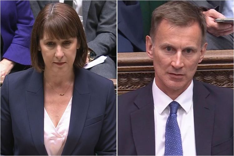 The Chancellor accused her Conservative predecessors of covering up the scale of immediate spending pressures on the public purse, leading Hunt to react with a scorned expression.