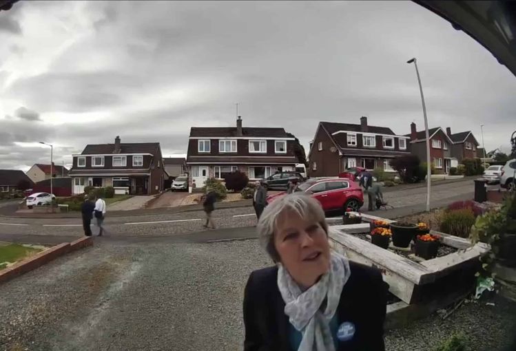 Ring doorbell footage of Theresa May door-knocking in Perthshire has gone viral after the former prime minister turned up to show her support for local Tory candidate, Luke Graham.